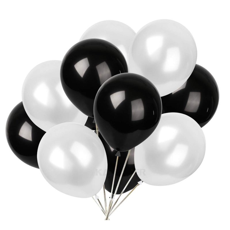 KADBANER white and black balloons 30-pack,12-inch latex balloons
