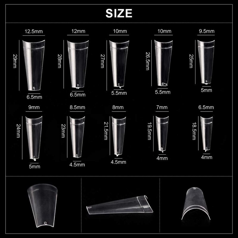 - 500pcs Nail Tips: acrylic nail tips with 10 sizes,are easy to trim,paint and apply and nice holding the color without separating or streaking. Made from high quality ABS material,No toxic, No smell, No harm to your nails or body and makes the nails durable & natural.