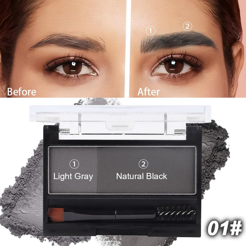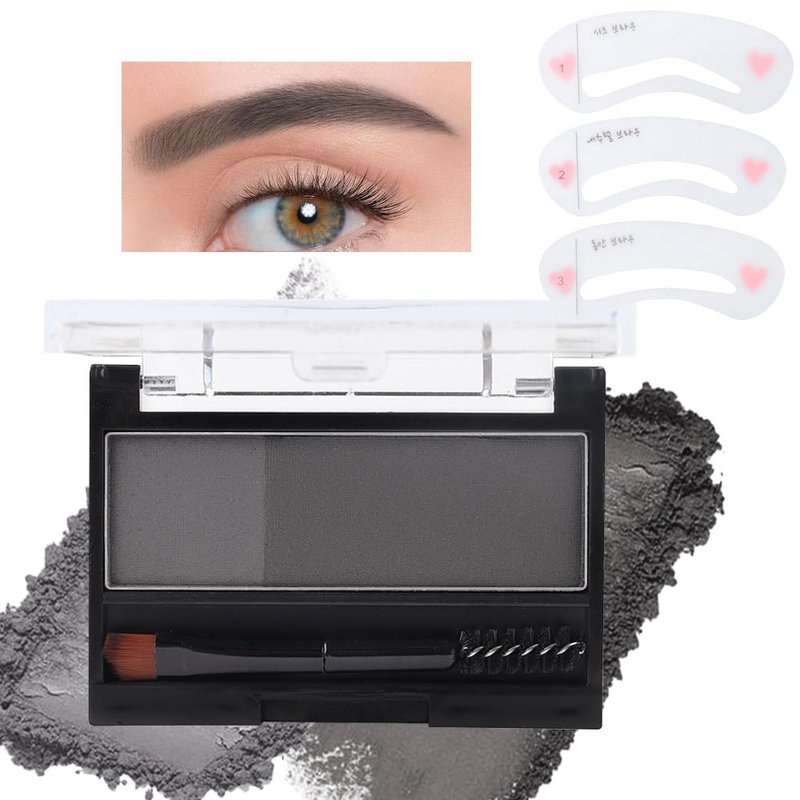 Kaely 2 Color Eye Brow Powder Makeup Kit,Eyebrow Contour Palette for Beginners,Brow Stamp Stencils Kit,Eyebrows Waterproof Gel with Brush,maquillaje para cejas,01 Light Gray+Natural Black