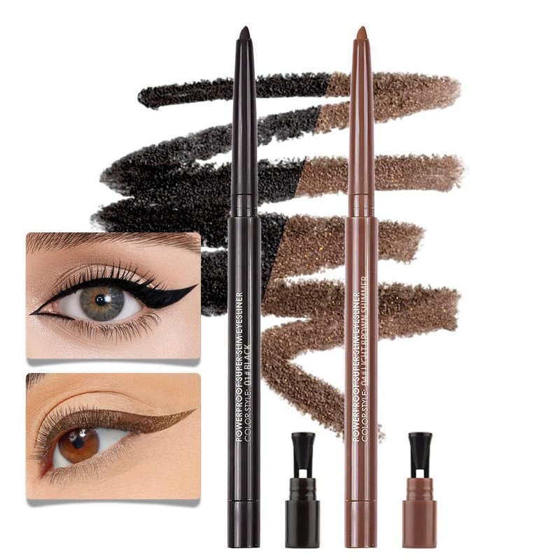 Kaely 2Pcs Black Light Brown Shimmer Gel Eyeliner,Eye Liner Waterproof Smudge Proof,Multi-Use Pencil Eyeliner,Built in Sharpener,Longwearing Eye Makeup,delineador de ojos contra el agua,01+04