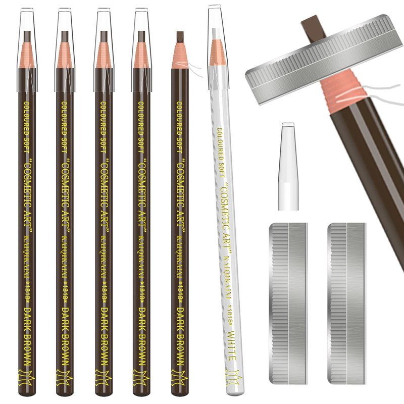 KAIQIKAIXI 6Pcs Dark Brown Waterproof Eyebrow Pencils Makeup Set For Marking, Filling And Outlining, Tattoo Makeup And Microblading Supplies Kit-Hard Refills Are Easy To Color (Dark Brown)