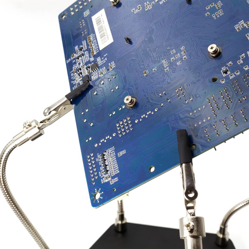 - 【5 Flexible Metal Arms Soldering Tools】Five adjustable metal gooseneck arms are fixed in the holes of the pentagon. Four 6.7" adjustable metal gooseneck arms with stainless steel precision alligator clips help the arms, completely freeing your hands to work easier than ever. An adjustable metal gooseneck arm with a 3X magnifier helps you see details or tiny things, improving work precision and efficiency, and freeing your eyes from fatigue.