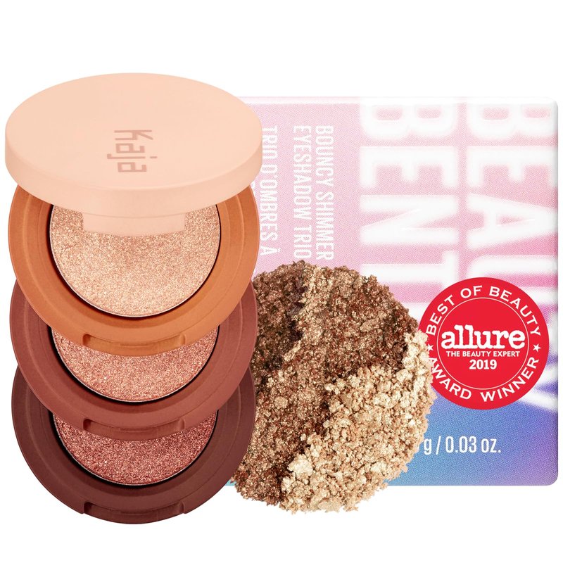- 💜 KAJA's Beauty Bento Bouncy Shimmer Eyeshadow Trio is a stacked, creamy, powder eyeshadow in curated trios of shimmers or combinations of matte and shimmer shades.