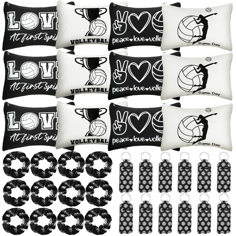 Kajaia 36 Pcs Volleyball Gifts for Teen Girls Makeup Bags Cosmetic Bags Sport Hair Scrunchies Lipstick Holder Keychains for Party Favors Team Gifts
