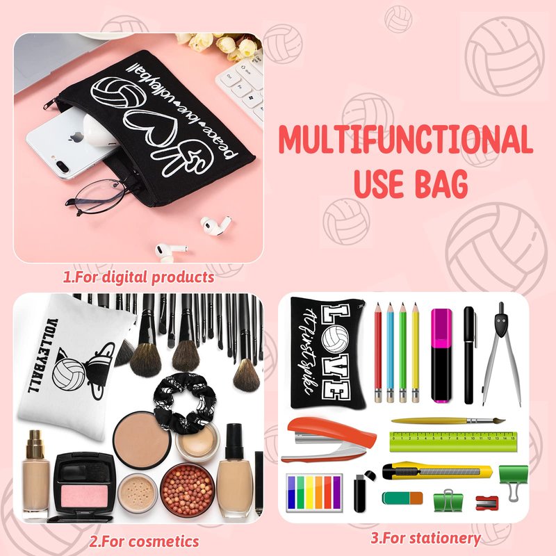 - Volleyball Theme Design: the volleyball team gifts are designed with volleyball patterns and words, full of energetic elements, the makeup bags feature 4 different styles of printings, 2 colors, black and white, serving as lovely gifts for your family, friends, classmates, teammates and other volleyball lovers