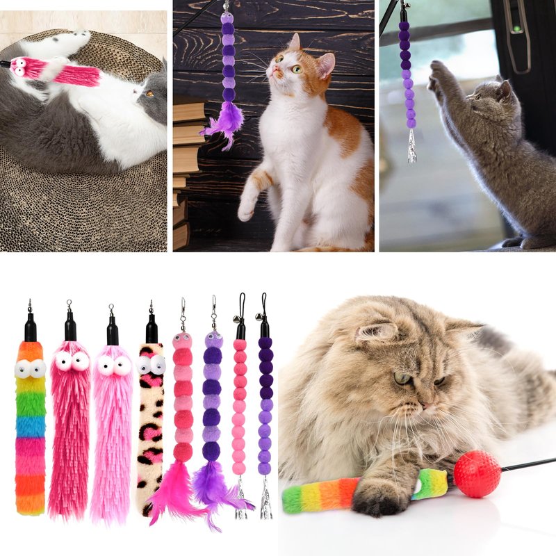 - WHAT YOU WILL RECEIVE: You will receive 8 pcs of fun and engaging cat teaser toy worm refills. With a range of different attachments, your cat will never get bored and can enjoy playing with these toys for a long time.