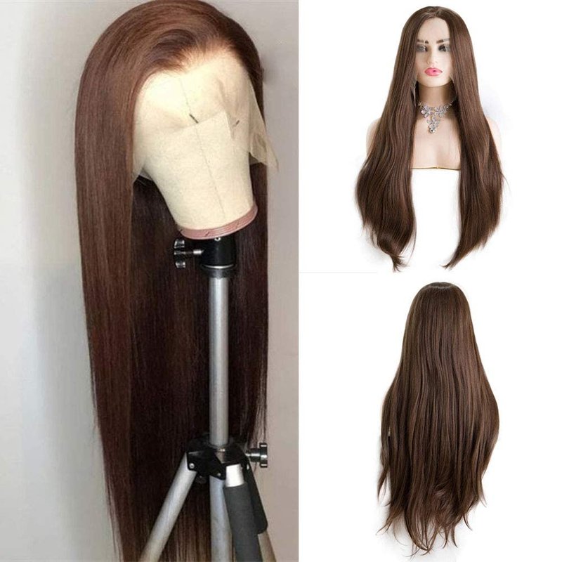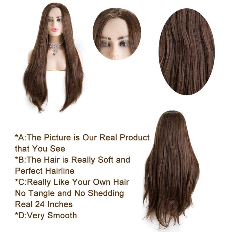 Kalisa Brown Lace Front Wigs Brown High Density Synthetic Wig Long Straight Brown Natural Color Glueless Wig Brown Wigs for Women Heat Resistant Fiber Soft Wigs for Daily Party 26Inch