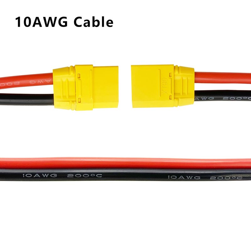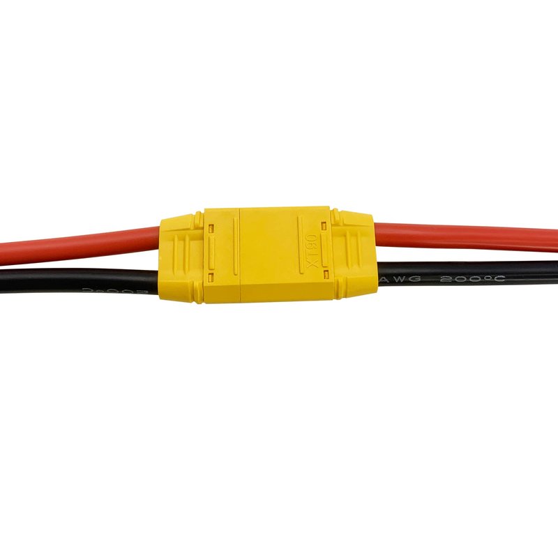 - XT90 Connector: XT90 male to XT90 female connector extension cable with XT90 gold-plated plug provides a solid and reliable connection to ensure stable current transmission. XT90 connector's housing prevents wires from being exposed, which prevents the power supply from hurting humans.