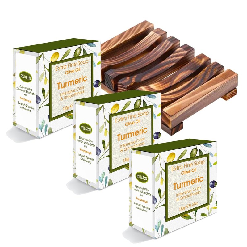 Kalliston, Extra Fine Olive Oil Soap, 100% Natural w/ Organic Ingredients, Therapeutic, Fine Spa Soaps, product of Greece, 4.5oz Each (Turmeric Intensive Care)