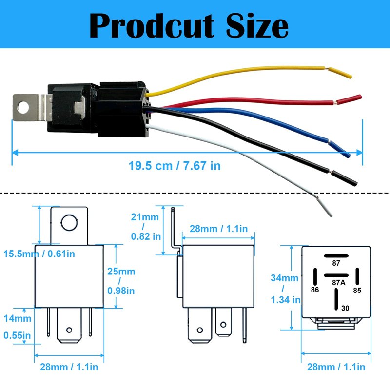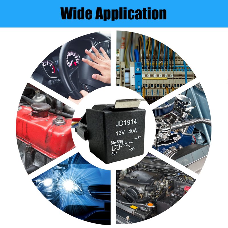 - 【Wide Applications】Our relays are practical automotive replacement accessories that can be used in tail lights, electric cooling fans, auxiliary lights, starters, headlights, horns, fog lights, led light bar, rock lights, rear window defrosters, and more.