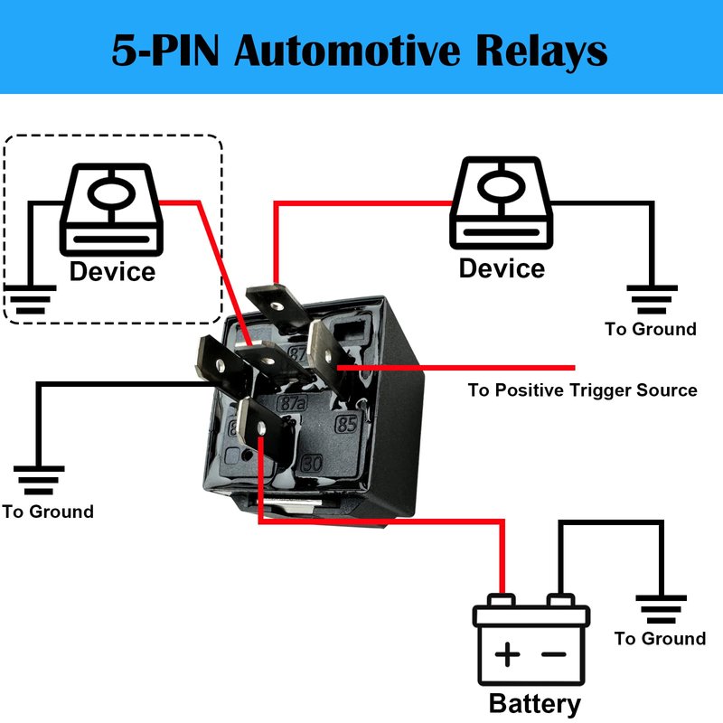 - 【5-Pin Design】Our relays are more versatile than 4-pin relays, allowing for use as normally open or normally closed relays. The compact size makes them easy to store and use when needed.