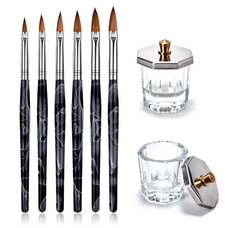 Kalolary 2Pcs Nail Art dappen dish and 6 Pcs Acrylic UV Gel DIY Nail Brush