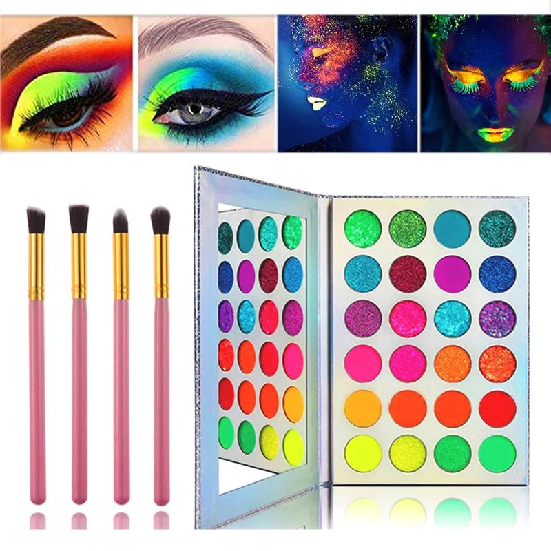 - 【High Pigment】- 24 colors Neon Eyeshadow Makeup Kit let the combination of pressed glitter, matters and shimmers, versatile shades and pretty and bold colors take your look to another level. Help you create the most mesmerizing looks.