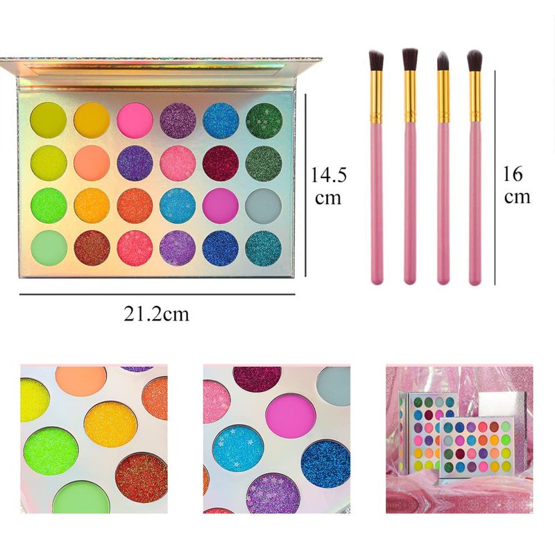 Package include: 1 pallete eyeshadow x 4 pink bruhses Color: 24 high pigment color