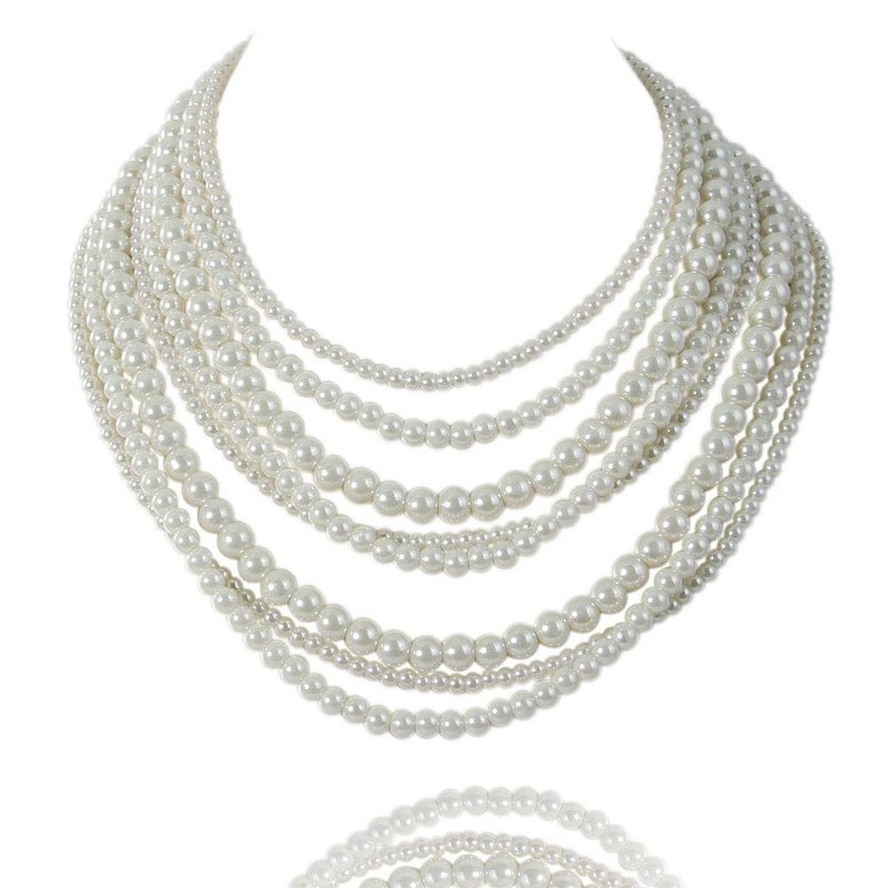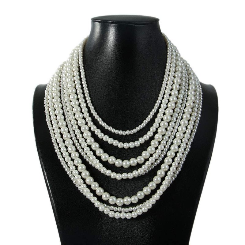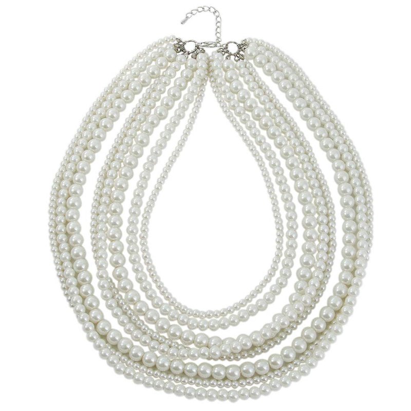 Kalse 8 Layers Strand Simulated Pearl Strand Bib Pendant Choker Chain Necklace