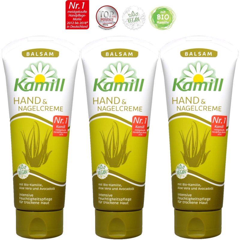 Kamill 3x100 ml Hand & Nail Cream BALSAM with BIO CamomileCamomile, Aloe Vera, Avocado Oil and Bisabolol | Germany
