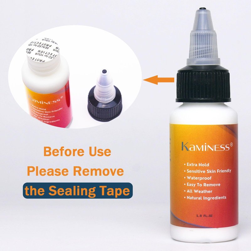 - 【KAMINESS WIG GLUE AND LACE GLUE REMOVER】Package includes 1 bottle lace glue for wigs waterproof super hold/ 1OZ + 1 bottle fast -acting lace glue remover/ 1OZ. hair glue is specially made to create a nature and undetectable bonding for lace front wig and poly hairpieces, toupee.