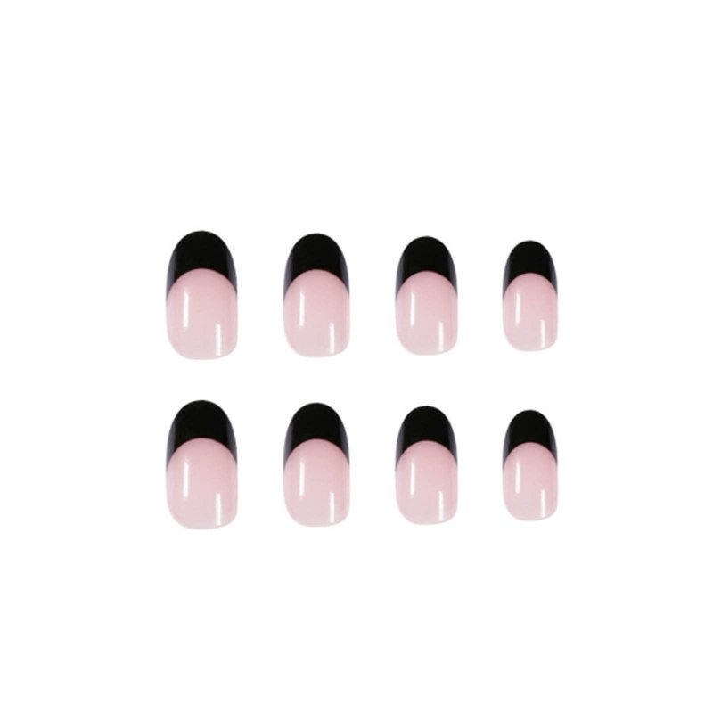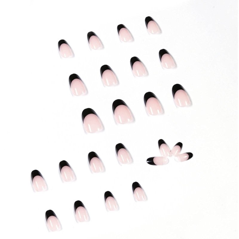 Kamize Fake Nails Medium Lenght French Press on Nails Almond Acrylic Full Cover Black False Nails for Women and Girls24PCS