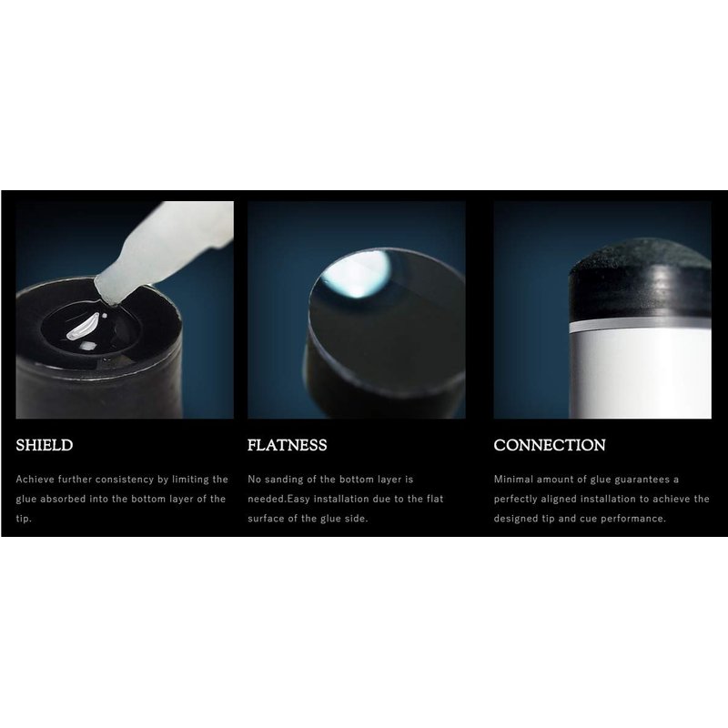Kamui Clear Features: Achieve further consistency by limiting the glue absorbed into the bottom layers of the tip. No sanding of the bottom layer is needed. Easy installation due to the flat surface of the glue side. Minimal amount of glue guarantees a perfectly aligned installation to achieve the designed tip and cue performance. For installation, use liquid base super glue such as Tiger Insta-Cure Glue in order to maximize the adhesion to the Kamui Clear tip. Using the gel type super glue tends to be too thick resulting in longer drying time and a weak bond.