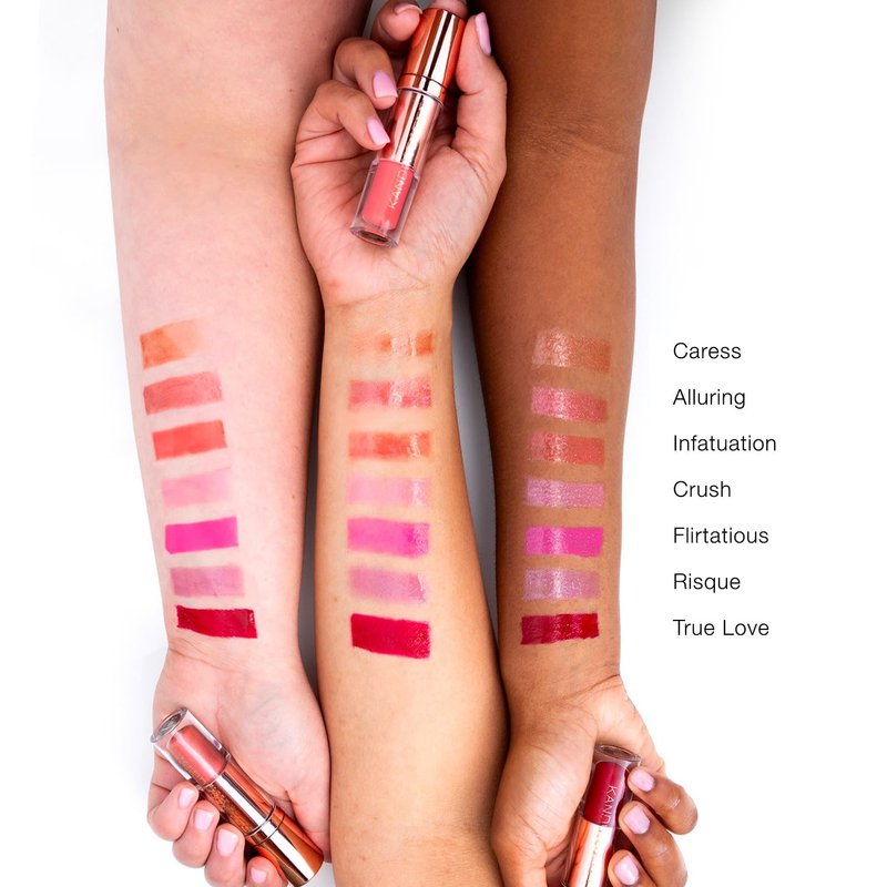 - Chic Color Selection: Choose from Alluring - a shimmering warm rose gold; Caress - a shimmering warm copper brown; Crush - a warm, sheer pale pink; Flirtatious - a rich and rosy pink; Infatuation - a coral with orange tones; Risque - a cool nude with pink and violet tones; Temptation - a sheer pale tan with warm tones; or True Love - a dark, rich blood red, each perfect for various occasions and moods.
