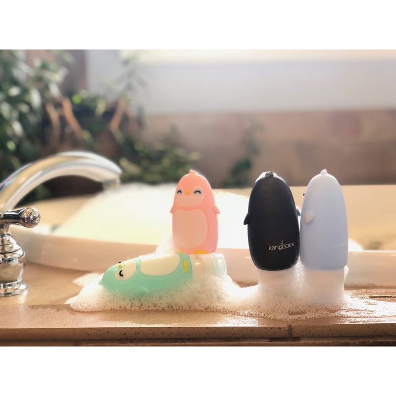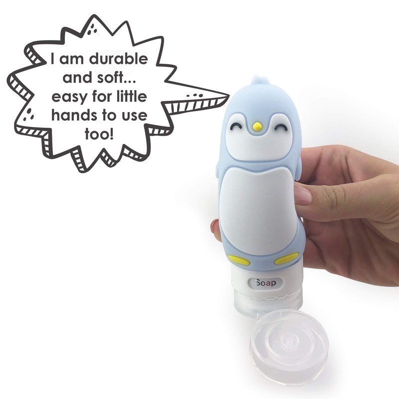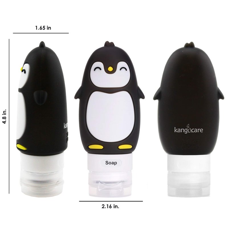 Kanga Care Travel Buddiez Penguin 3oz Refillable Silicone Leak Proof Toiletry Bottle 4 Pack set for Shampoo Conditioner Lotion Face Body Wash - Penguin Family (4 pack) Multicolored