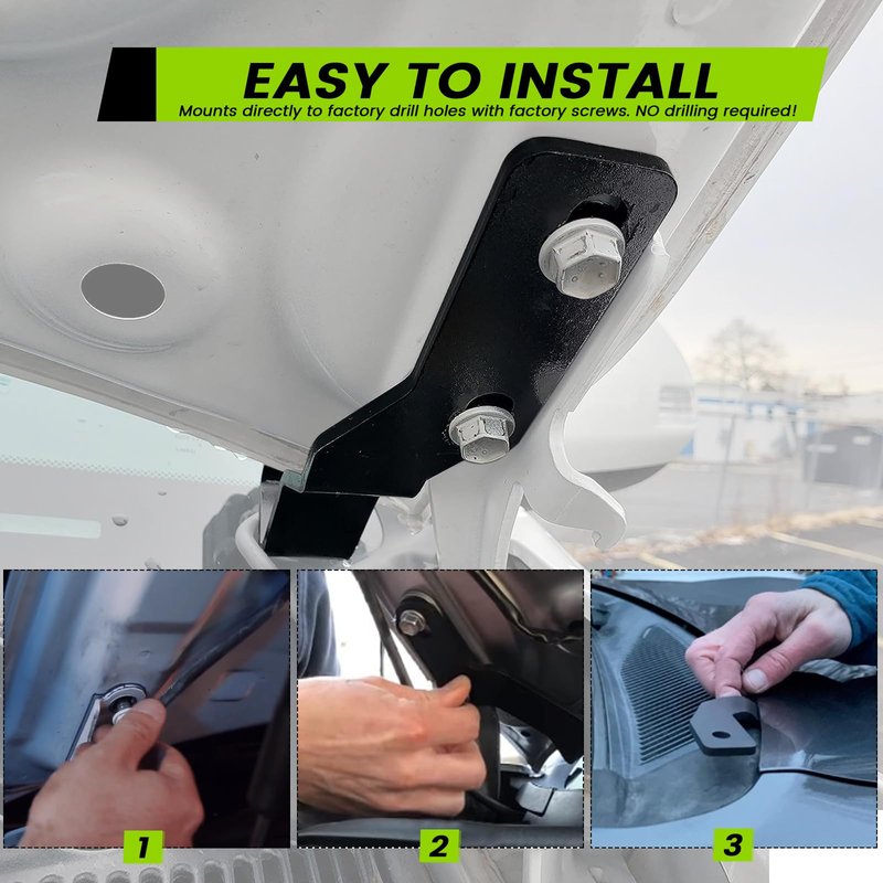 - 【Feature】Allows you to mount the hood on the corner of the hood without affecting the opening or closing of the hood Beautiful appearance,low profile design.Designed to ride at night or even on the road behind to improve safety.