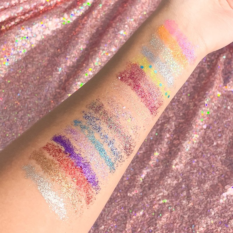 - 42 PRESSED GLITTER SHADES: This palette includes a variety of 42 different pressed glitter colors and textures from fine pressed glitter to cute star shapes and holo finishes.