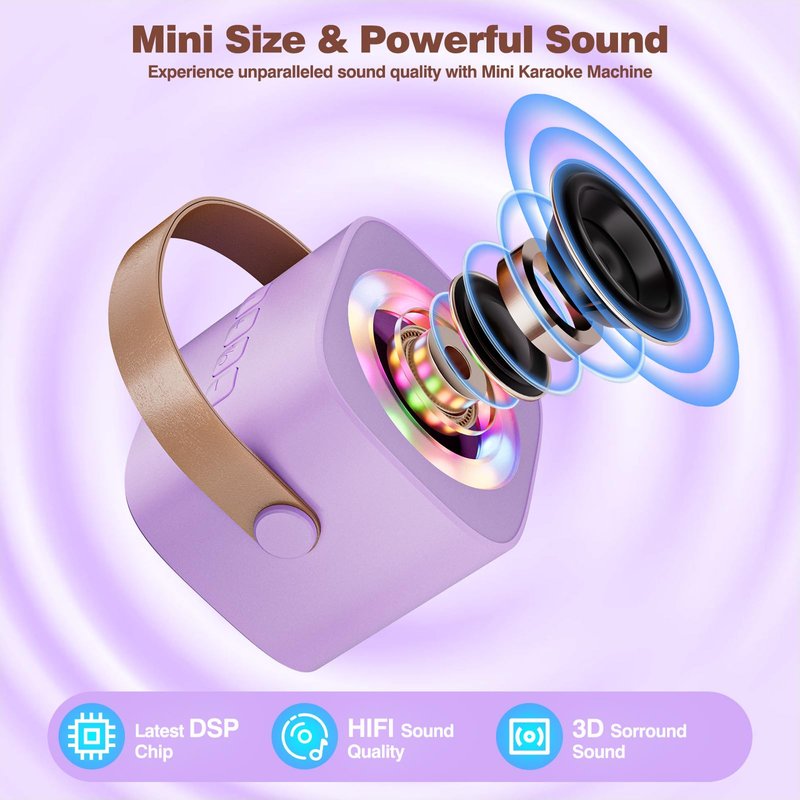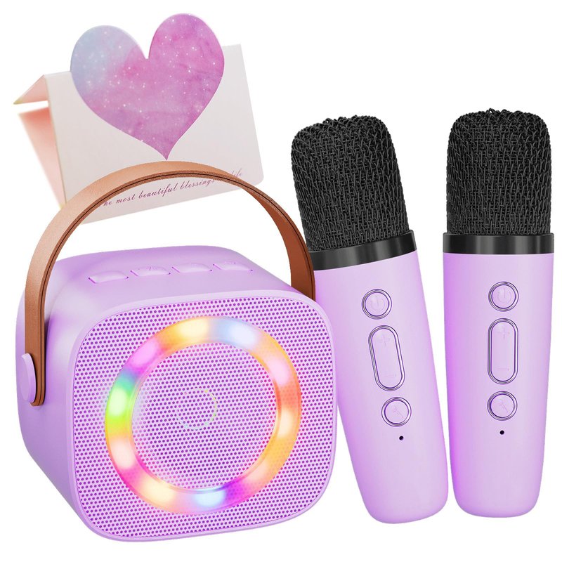 Karaoke Machine for Kids Adults, Mini Portable Bluetooth Speaker with 2 Wireless Microphone for Singing, Birthday Gifts Party Favors, Kids Toys for Ages 4, 5, 6, 7, 8, 9, 10+ Teens Girls Boys Purple