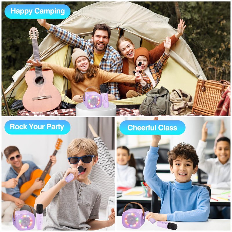 Karaoke Machine for Kids, Portable Bluetooth Mini Karaoke Microphone Singing Speaker with 2 Wireless Mic, Long Battery Life and Stereo Sound, Christmas Birthday Gifts for Family Home Karaoke Machine for Kids Adults, Mini Portable Bluetooth Speaker with 2 Wireless Microphone for Singing, Birthday Gifts Party Favors, Kids Toys for Ages 4, 5, 6, 7, 8, 9, 10+ Teens Girls Boys Purple