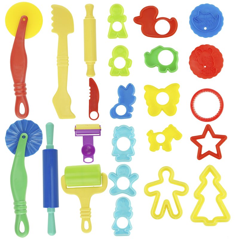 - Dough Tools Kit: 24 pieces in one set (Cutouts (Flower, People, Animals, shapes) and Dough Tools).