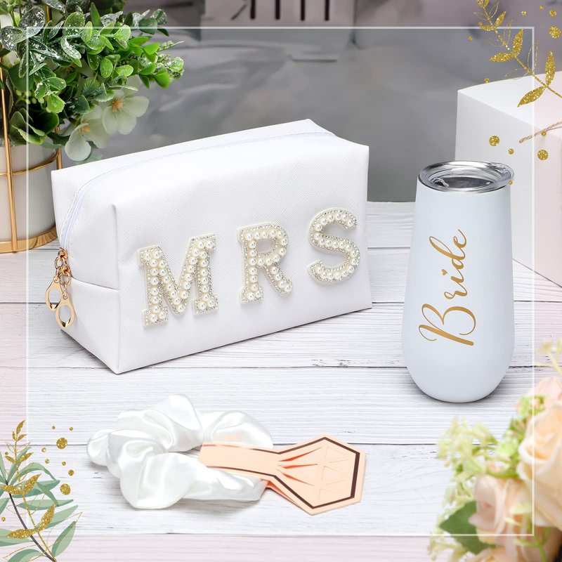- Package Listing: you will receive a white stainless steel bride tumbler, a pearl rhinestone cosmetic bag and a white large scrunchie; The complete accessories are for you to use in your wedding party, enough to meet your usage needs