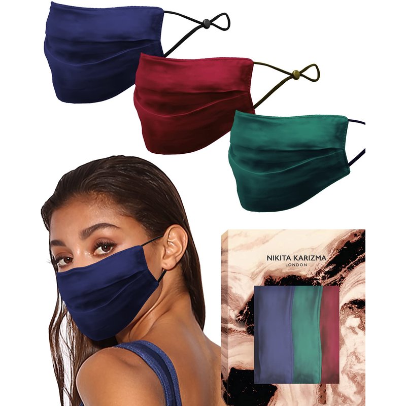 KARIZMA Beverly Hills Silk Face Mask 3 Pack. Jewel Tones Fashionable Designer Face Mask for Women. Washable Fabric Face Mask Reusable Facemask. Real Mulberry Silk Masks, Luxury Fashion Masks for Women