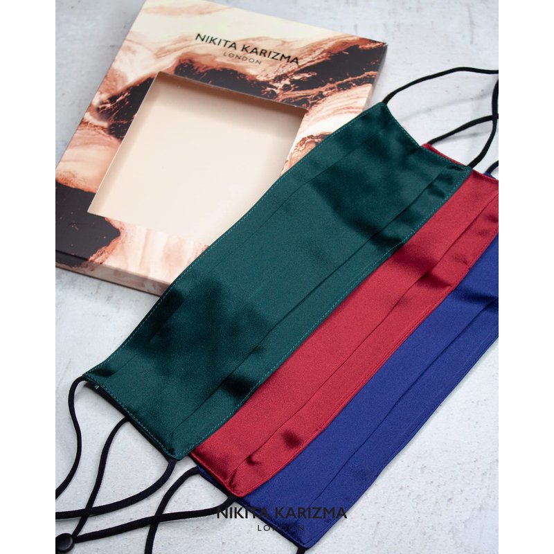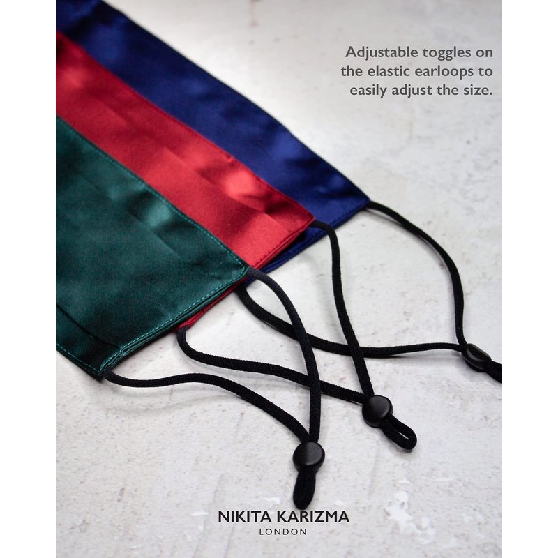KARIZMA Beverly Hills Collection of Silk Masks for Women. Features: double layer 19 momme 100% Mulberry Silk inside and out, adjustable toggles, nose wire and pleating for comfort and adjustability. Let fresh air in, and keep maskne and irritation out! Available in multi packs with unique vibrant colors like Jewel, Earth or Varied Skin Tone! Also available in single packs as a pretty pink mask, white, champagne, navy blue, gray, olive, beige, and black face mask Choose your fave and elevate your look while honoring the codes of Self Care Club! And who is KARIZMA? Our conversations, projects and collabs with stylists, influencers and celebrities inspire our creations, so you can feel equally beautiful and confident, and ready to share your positive message to the world, too! Perhaps that is why our reusable mask is worn by so many stylish celebs!