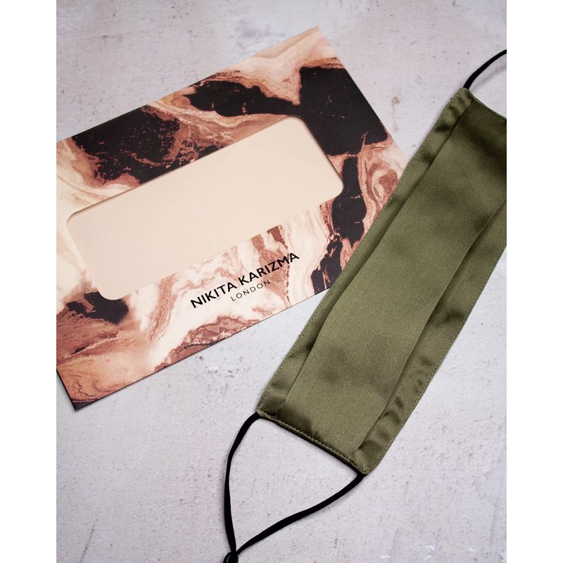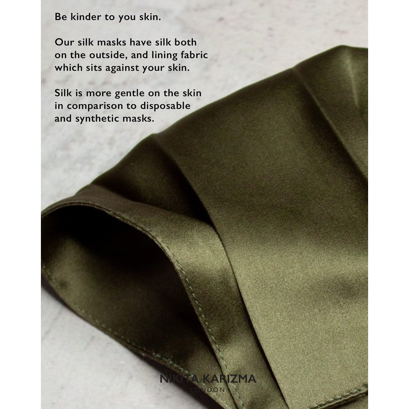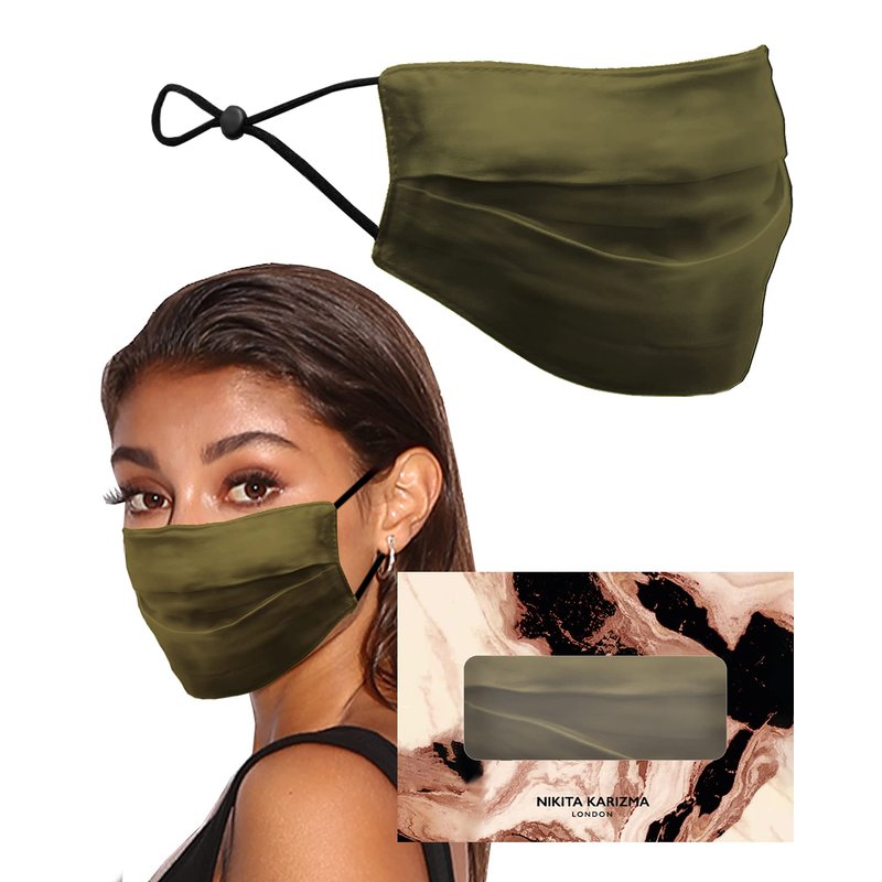 KARIZMA Beverly Hills Silk Face Mask. Olive Fashionable Designer Face Mask for Women. Washable Fabric Face Mask Reusable Facemask. 19 Momme Mulberry Silk Mask - Luxury Fashion Masks for Women