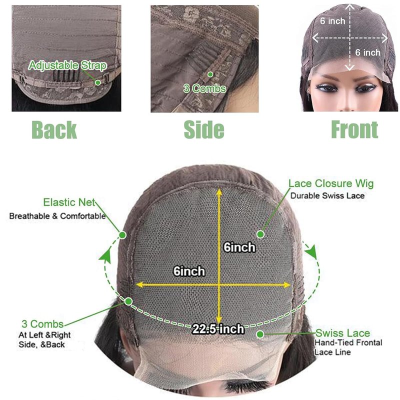 - Lace Closure Wigs Human Hair Quality: Short Bob 6x6 Lace Front Human Hair Wigs for Black Women. Can be Washed,Bleached, Dyed,Permed, Curled, Straightened As You Like.