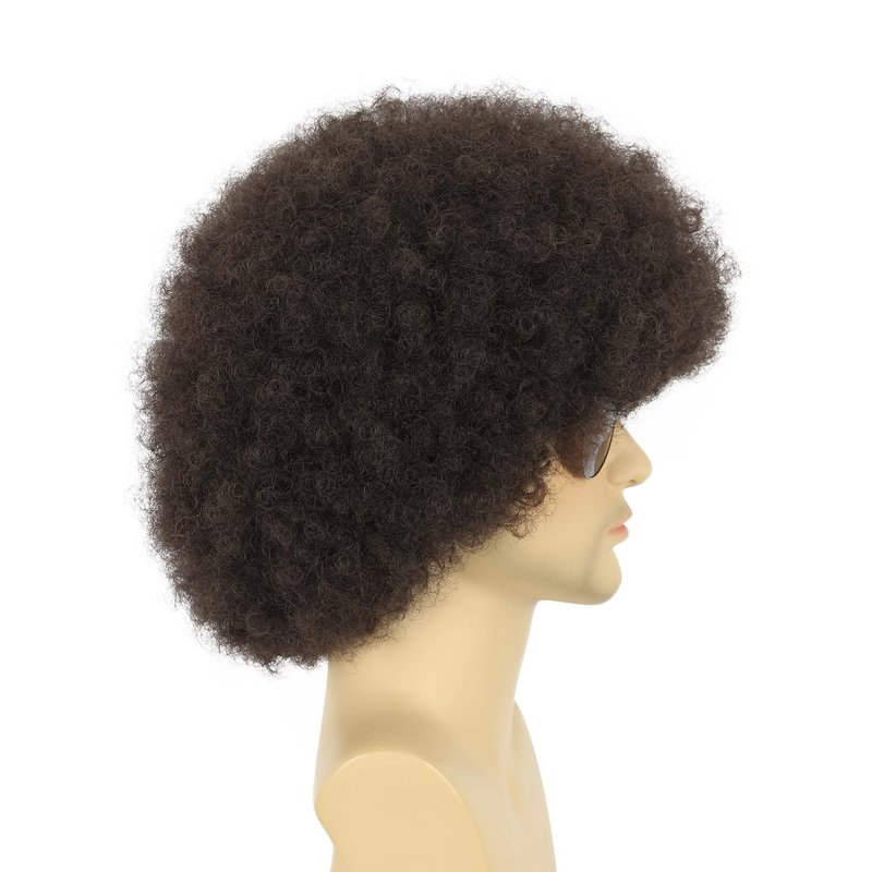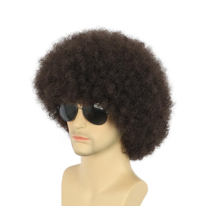 karlery Adult Men Women Afro 70s 80s Curly Dark Brown Wig Rocker Party Wig California Halloween Costume Wig