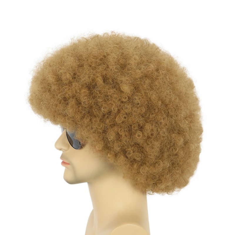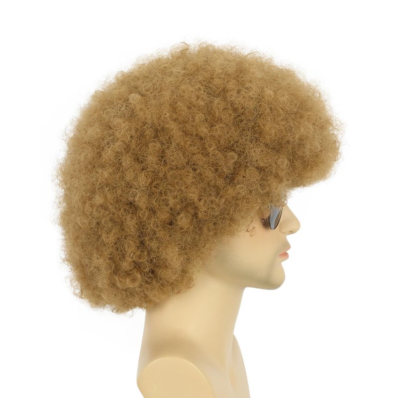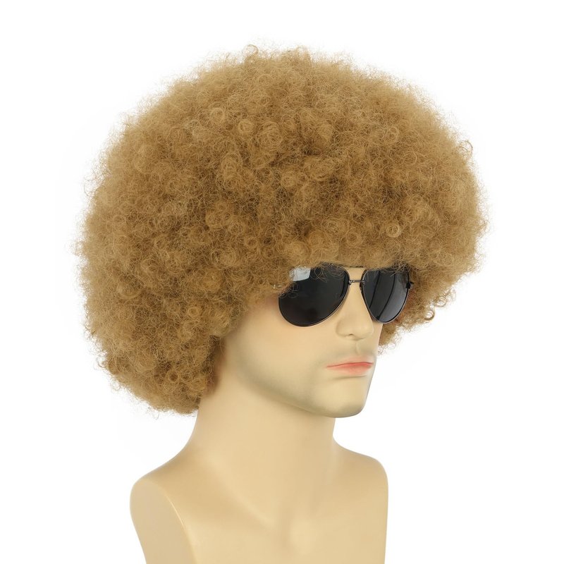 karlery Adult Men Women Afro 70s 80s Curly Light Brown Wig Rocker Party Wig California Halloween Costume Wig