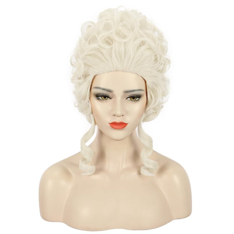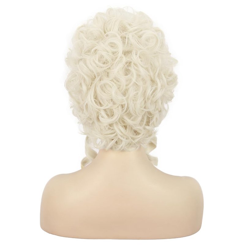 karlery Women Short White Blonde Curly Wig Queen Wig Colonial Wig Halloween Party Costume Wig