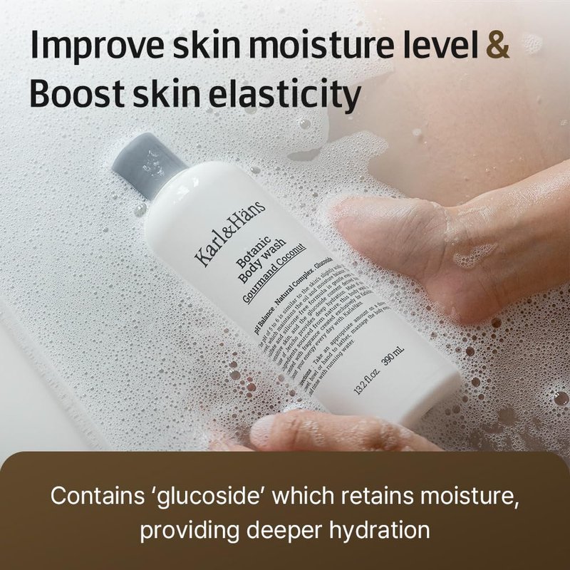 - 🥥Organic and Natural Formula: Karl&Hans Coconut Body Wash is made with over 97% natural and organic ingredients, including nourishing coconut oil and organic flower extracts. It provides a gentle and safe cleansing experience for all skin types, even sensitive skin. VEGAN-CERTIFIED: We strive to make a better future by being a more responsible and ethical brand.