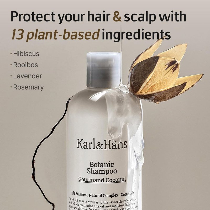Karl&Hans Botanic Gourmand Coconut Vegan Shampoo Organic - Sulfate-Free, Moisturizing, Nourishing Shampoo with Coconut Oil&Natural Flower Extracts for Dry and Damaged Hair and Scalp Repair, 13.2 fl oz