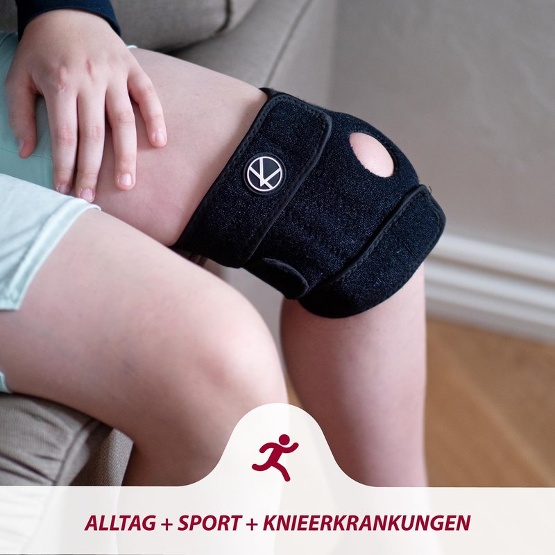 - Open Patella Knee Brace Support reduces pressure to the patella & underlying knee joint, making the patellofemoral knee brace perfect for daily usage. Perfect knee support to wear at home, during the school day, and when attending after-school activities and training. Kids' knee support is meant for walking, running, playing, gymnastics, hiking, bowling, biking, basketball, football, and other sports.