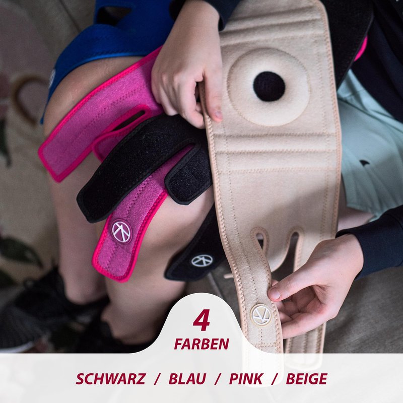 - KARM Kids Knee Brace is available in one size and is suitable for 4-15-year-old children to make shopping easy for parents. There are 3 different colors to choose from (black, blue, pink) to make choosing a knee support fun for kids. Kids knee support brace offers high-level support and features side stabilizers to offer more stability. Use for different sports, minor ligament injuries, instability, twisted knee, tendonitis pain, torn meniscus, and swelling.