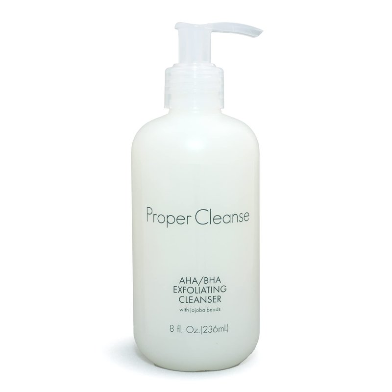Proper Cleanse AHA/BHA Exfoliating Cleanser with Jojoba Oil. A moisturizing cleanser with exfoliating scrub particles that has both Alpha & Beta Hydroxy Acids as well as healing Jojoba beads. Formulated with fine natural oils and moisturizers, this gentle cleanser leaves the skin silky-soft, smooth, and primed for moisturization. You instantly feel the soothing Jojoba beads on your skin. It will brighten and clarify all skin types and will not dry out your skin. It is gentle enough to use twice daily Is a deep pore foaming cleanser, which includes Alpha and Beta Hydroxy Acids of Glycolic, Lactic and Salicylic. These natural acids loosen dead skin cells to accelerate the natural skin renewal process. Natural Jojoba Beads gently exfoliate the skin to prevent blockage of pores. Essential Oil scented. Made in the USA