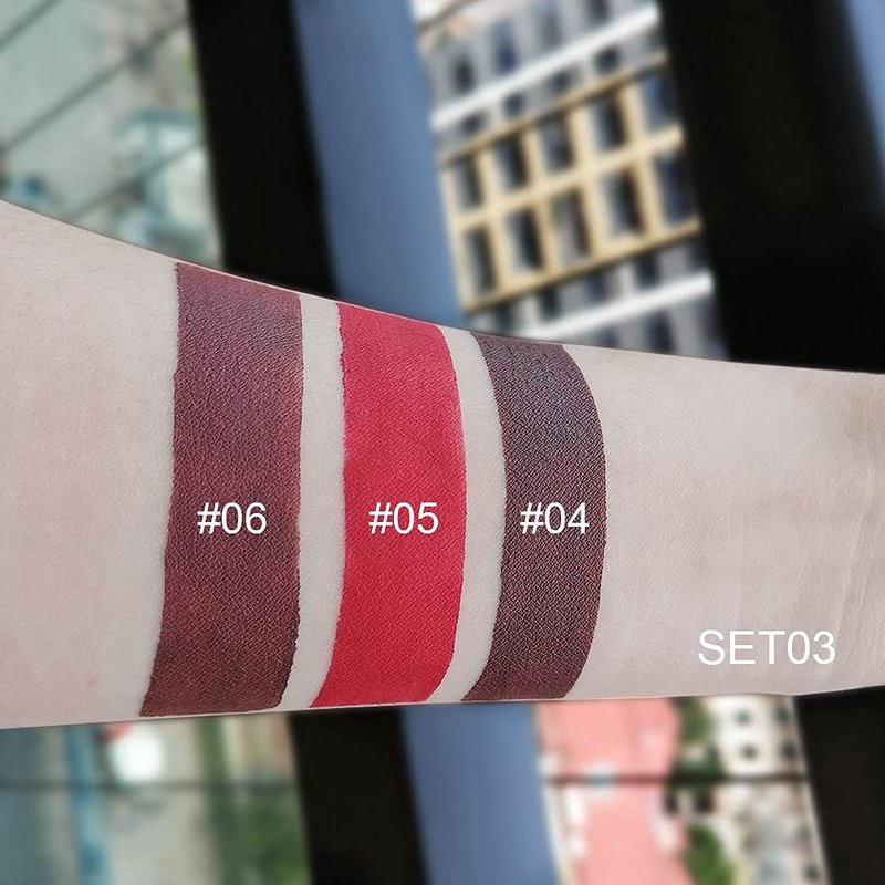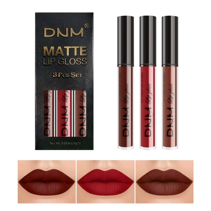 KARNAR 3Pcs Deep Red Brown Matte lipstick Set, Lip Stain Waterproof Lip Gloss Gift Set,Lippies Lip Matte Makeup Lipgloss Beauty Cosmetics Kit (SET02)