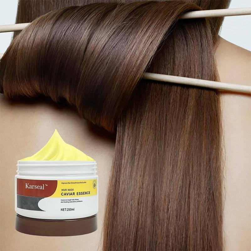 We believe in nature’s transformative power. Karseal caviar essence hair mask harnesses natural ingredients renowned for their nourishing and repair effects. Whether you aim to strengthen, hydrate, repair, or style your hair, our caviar essence hair masks are caters to every hair type and need. Karseal caviar essence hair masks are meticulously crafted to boost your hair’s radiance, helping you shine with confidence every day. Luxuriously Creamy Texture Our caviar repair hair mask features a rich, creamy texture that rinses out effortlessly, leaving your hair feeling light and refreshed. Make Stronger, Shinier Hair See immediate results with hair that feels stronger and looks rejuvenated after caviar essence hair mask just one use. With regular application to use caviar essence hair treatment masks, enjoy improved elasticity, softer and healthier hair, reduced breakage, and dazzling shine. Powered by Premium Ingredients Infused with cetearyl alcohol and caviar extract, our hair treatment mask enhances fortifies the hair cuticle, boosts moisture retention and elasticity, repairs dryness and damage, and leaves your hair silky and radiant. Cruelty-Free Care The formulas in our caviar collagen hair mask are cruelty-free to provide gentle, professional care for your hair. Indulge in the ultimate hair treatment and let your hair shine with the luxury it deserves.