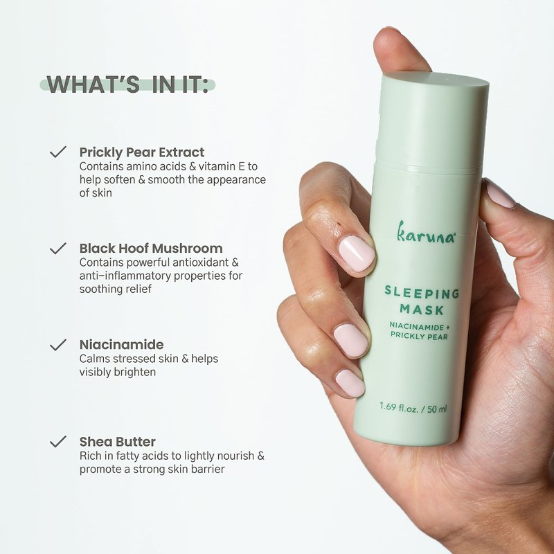 Experience skin renewal with Karuna Skin’s Sleeping Mask.