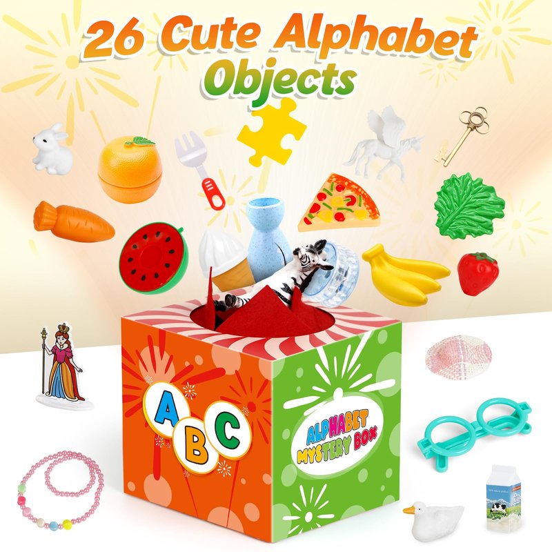 Kasfalci Alphabet Mystery Box for Kids,26 PCS ABC Learning Toys,Letters Sorting Matching Games for Toddlers,Letter Sounds,Speech Therapy Fine Motor Toys for Preschool Kindergarten Classroom