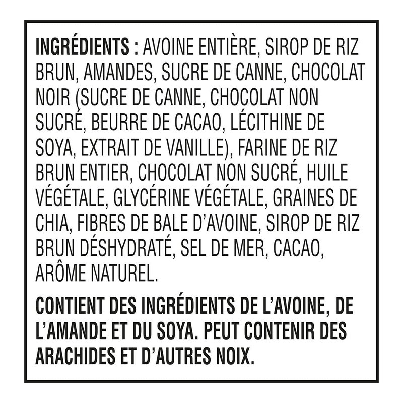 Kashi Chocolate Almond and Sea Salt chewy granola bars are made with chia, a satisfying snack, made with natural ingredients. Source of Omega-3. Natural Ingredients. 6g Protein. Made with chia. Imported from Canada