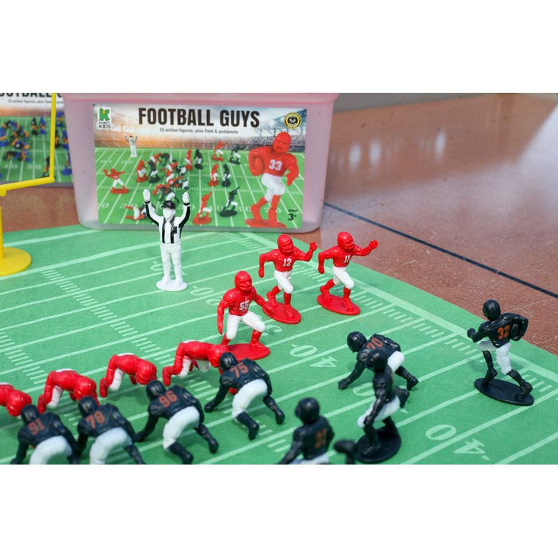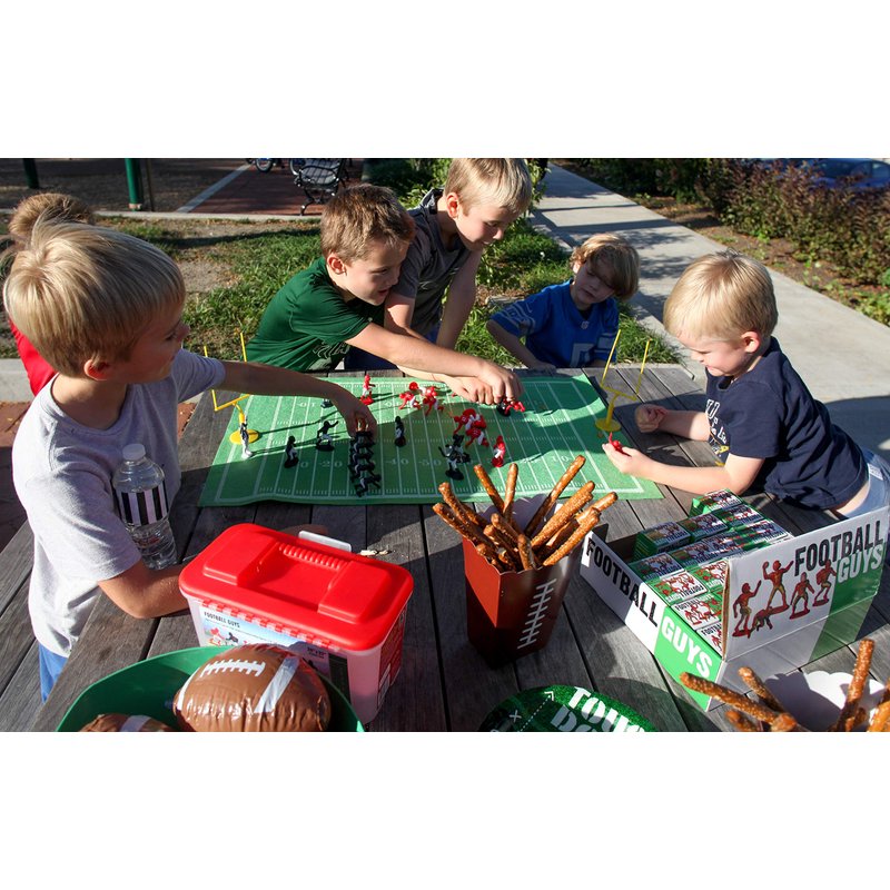 - INCLUDES: 28 pieces - 24 - 2-inch Football GUYS, a ref, 2 goalposts, a 20-inch x 32-inch felt field, a simple instruction booklet that describes the basic rules and strategy of football and sturdy carry case makes it super easy for kids to travel with so football fans can play wherever they go and always have a place to store their GUYS. A great way to help kids keep their toys organized. Five styles available. Award winning toy, invented by a Mom of 4 sports loving kids.