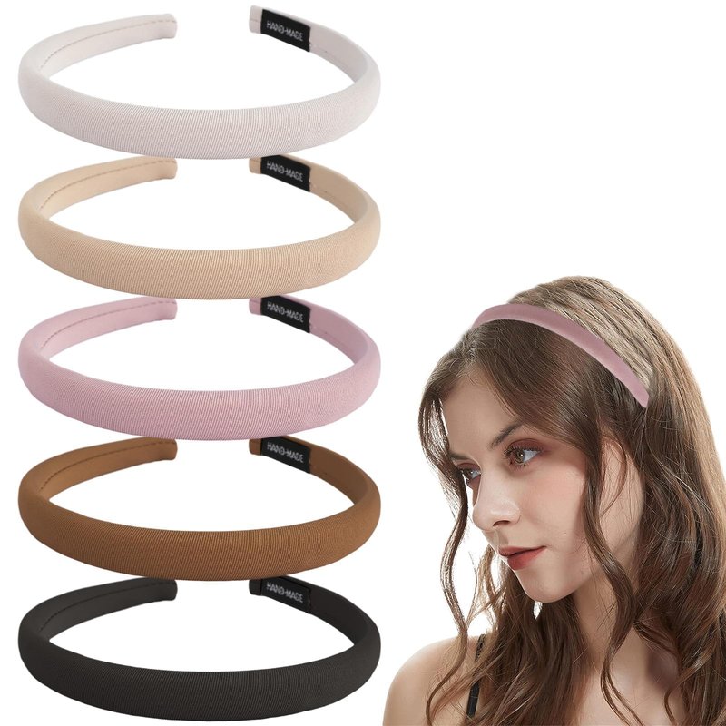 Kasmena 5PCS 0.6" Sponge Padded Headband for Women Girls Thin Headbands,Non-Slip Soft Wide Hairbands Artificial Fabric Headband Hair Accessories,Comfortable Color